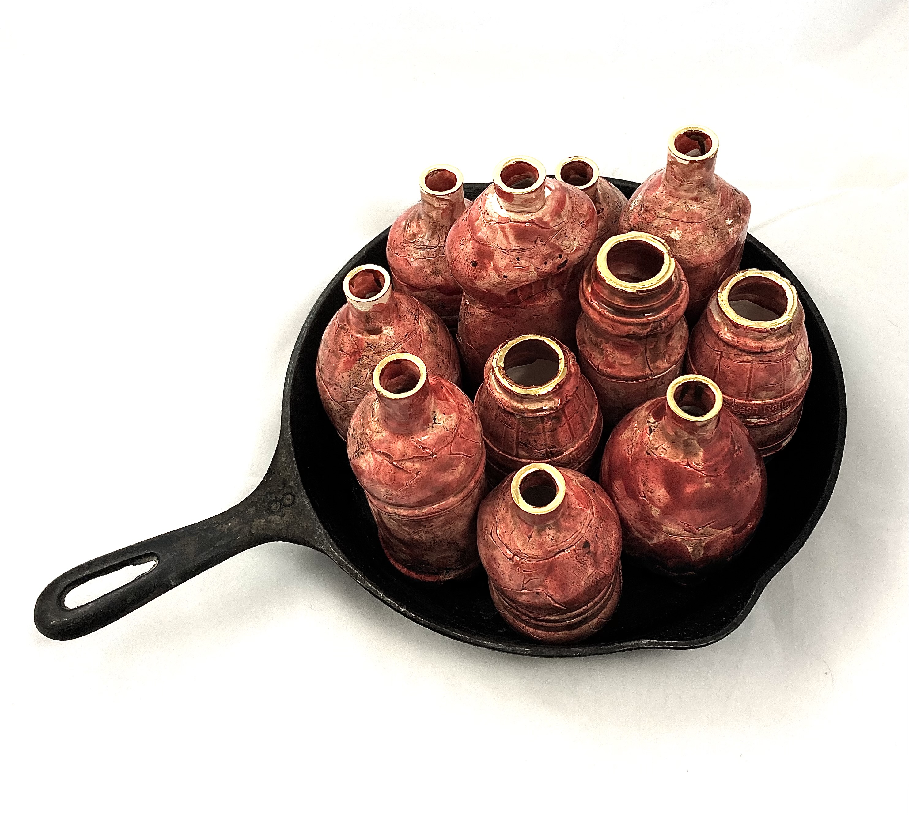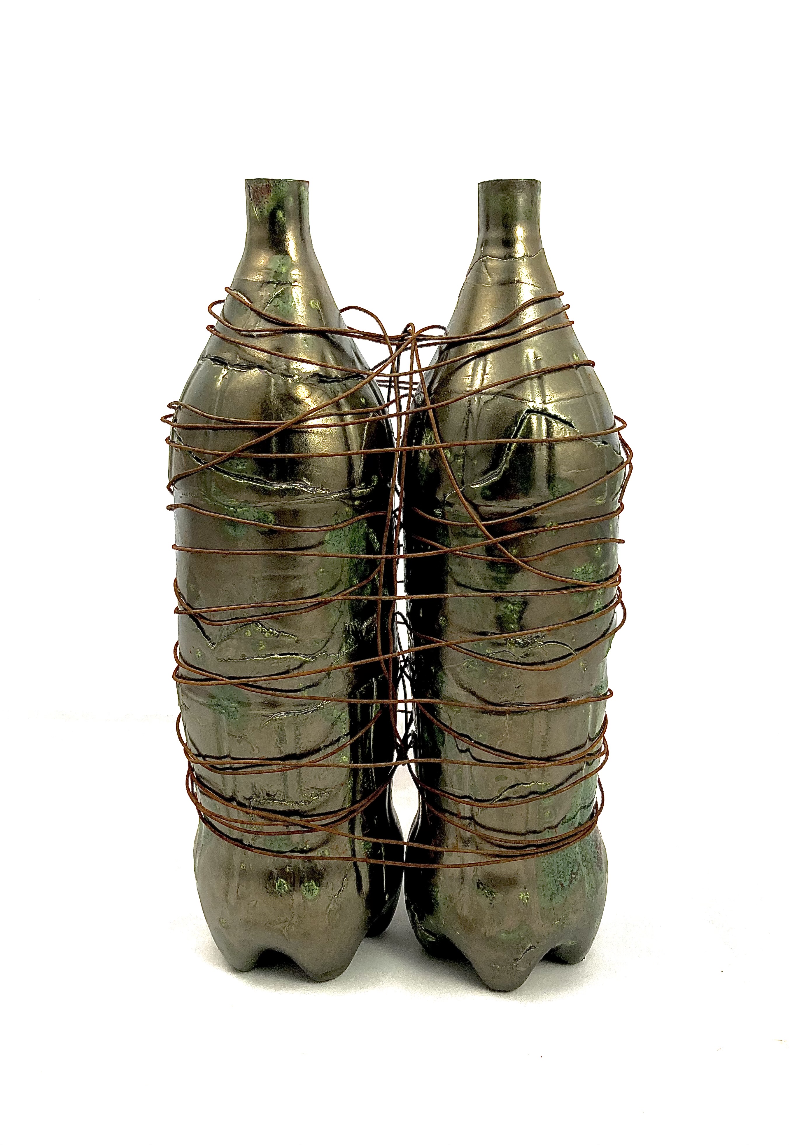 Who has control over our bodies? These two sculptural assemblages reference themes of autonomy, or more fittingly, lack thereof. Both pieces intend to provoke, rather than attempt to offer solutions. In my three-dimensional work, I continue to use worthless discards and urban artifacts in my visual vocabulary. While Untenable offers multiple interpretations, most of which suggest situations which confine rather than support, Miscarriage of Justice speaks to ‘women’s work’, exploitation, oppression, abuse, and the shocking brutality which pervades our world.