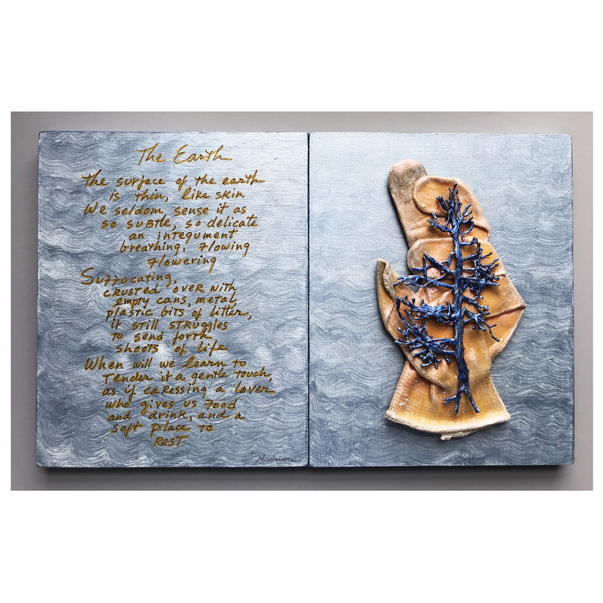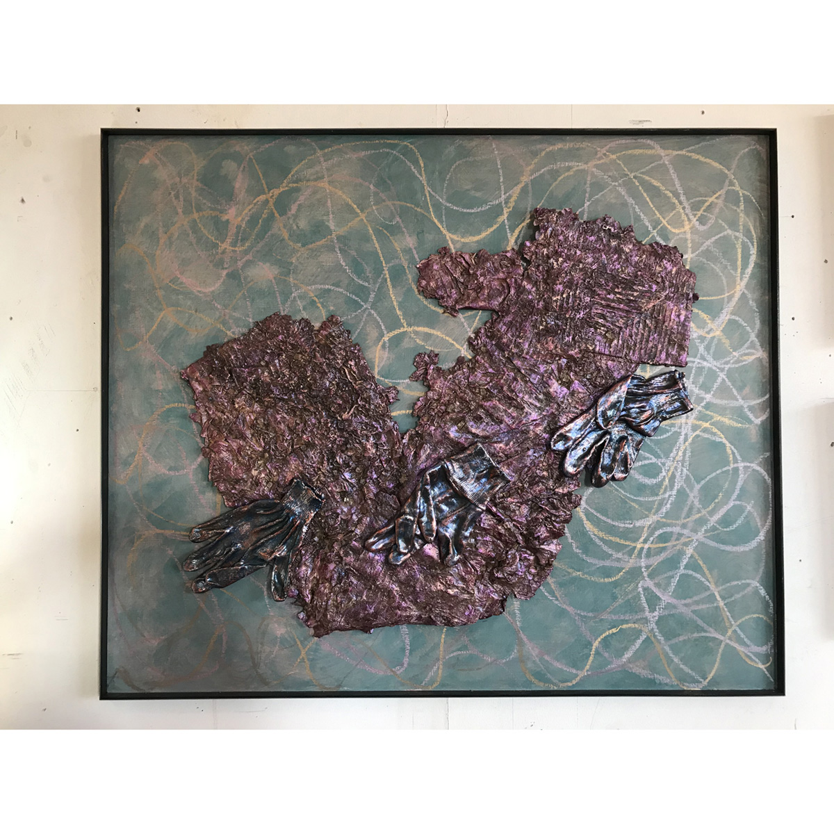 I love working with found gloves and preserving them in the gesture that they come to me. The quirkiness of each form seems expressive of each of our particular natures. We, as human beings and caretakers of the planet, hold life in our hands every day. How tenderly do we do so, with how much consciousness? During this time of pandemic, we have the opportunity to slow down, reconsider what is really important. Recognizing our inter-connectedness and acting more responsibly towards the whole of our inextricably intertwined world would seem an appropriate response. We are all subject to the touch of time.