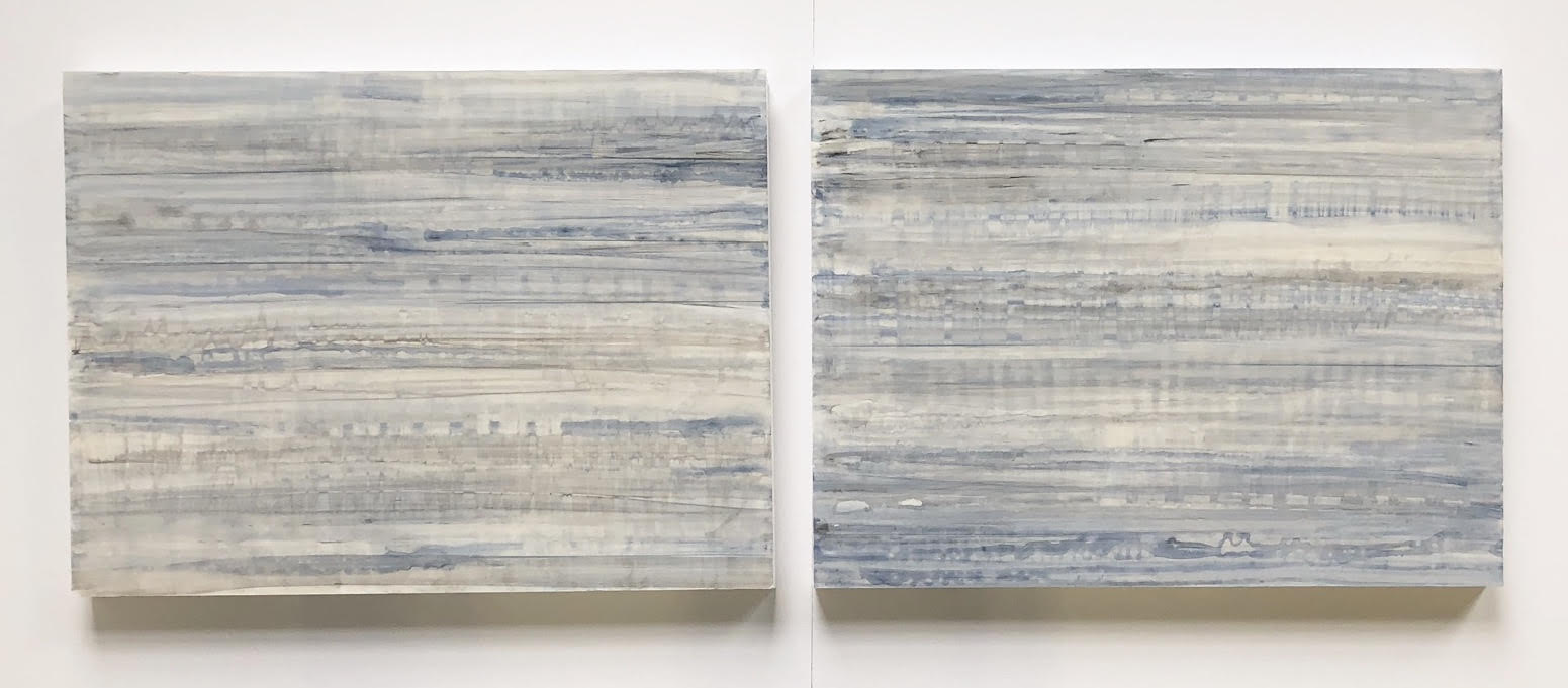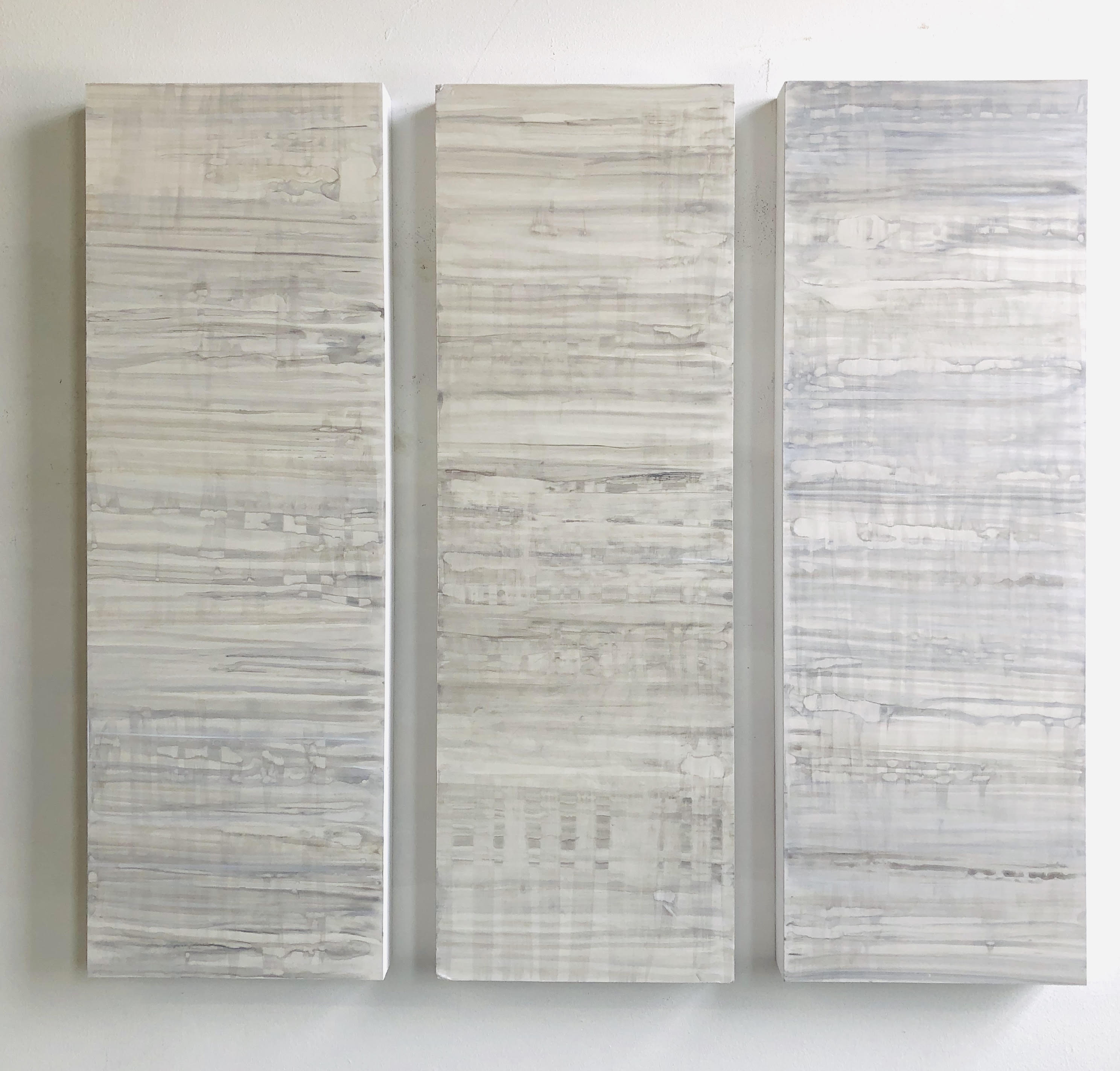 I merge markings and colors referencing both organic and fabricated materials. I am inspired equally by patterns in nature, as well as those in textiles, architecture, and a myriad of manufactured elements. The passage of time and a narrative of constant change is evident through many layers, as well as between multiple panels of each painting.