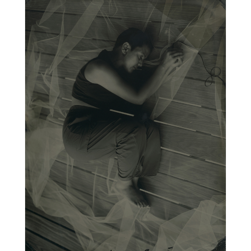 As an Iranian woman immigrant to the United States, I live between two worlds, tethered to both and navigating the complexities of dual identities. Sleepless, I clung to the news, far from home yet unable to feel distant. In this unrest, I began creating self-portraits: images of myself pretending to sleep, performing stillness while confronting fear, insomnia, exile, and the fragile line between survival and self. The self-portraits are in a position of vulnerability, stillness, and surrender. These figures exist between states,invoking both the living and the dead. The cicadas, creatures known for their song and their long, hidden lives underground, become metaphors for voices silenced, for life cycles interrupted, for buried trauma.