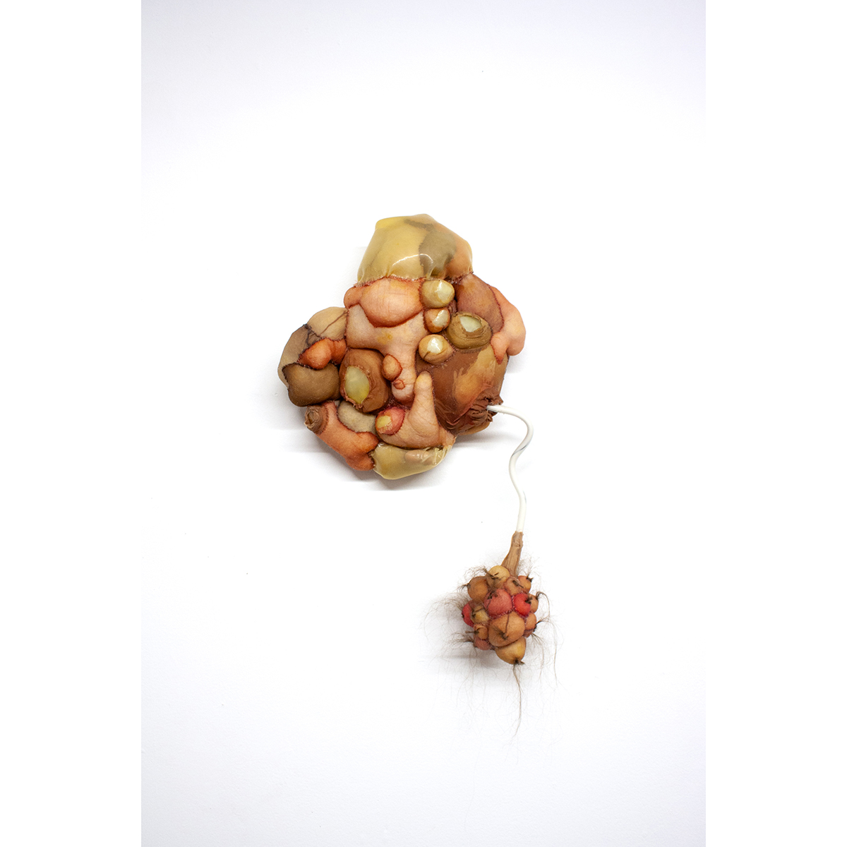Permeating a paradoxical allure with materials like latex and hair, my work serves as a surrogate for the body and the afflictions of bodily containment. I work in a space of untangling entrails, of autopsying contradictions. Shedding my skin, peeling blisters, picking scabs, and excreting the self, I scratch at the relationship of the body and the structural tendencies they exist in.