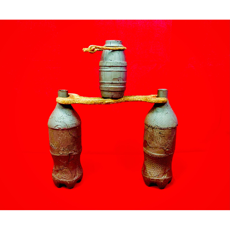 Ceramic and found metal objects