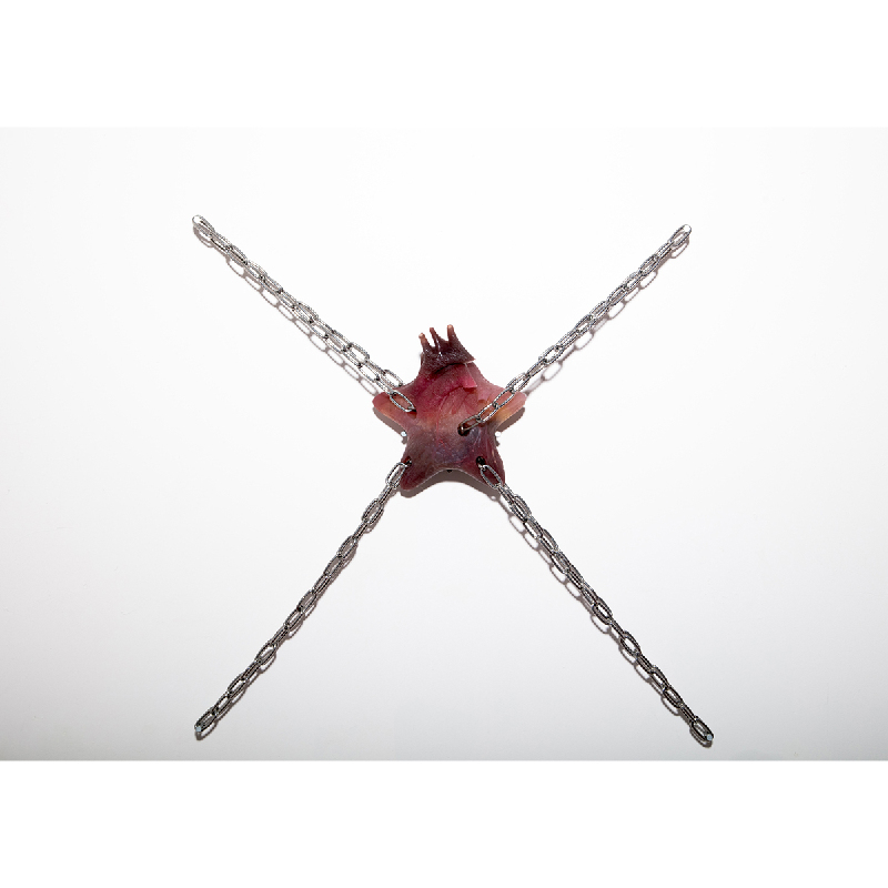 Pigment mixed with silicon, steel chains, nails