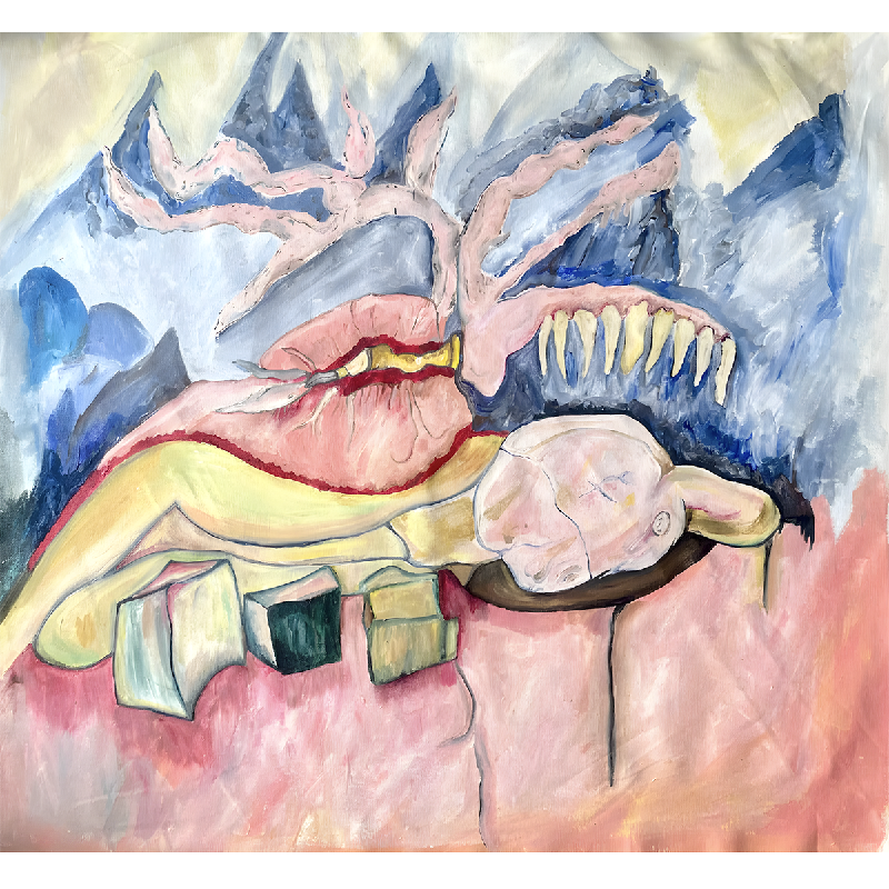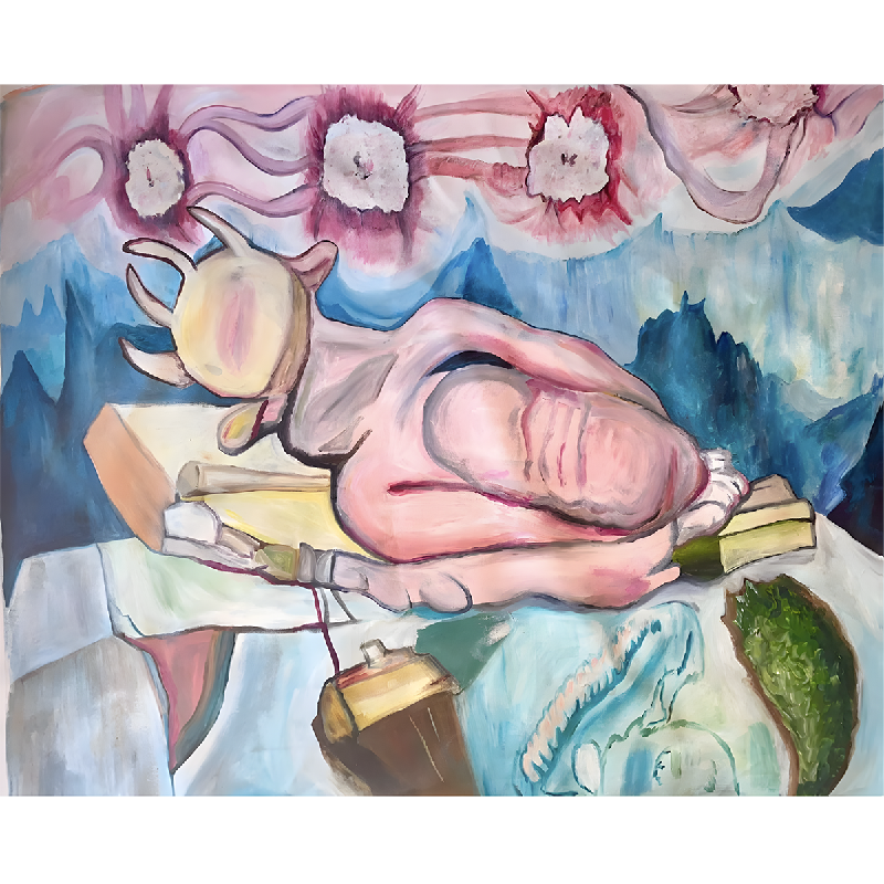 Rebecca is a multidisciplinary artist based in Lo$t Angeles. She holds an MFA and her work spans painting, writing, and mixed media. Her short stories have appeared in various literary journals, and her visual work has been exhibited in Paris and Los Angeles.